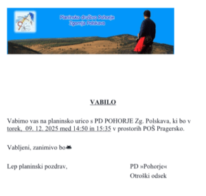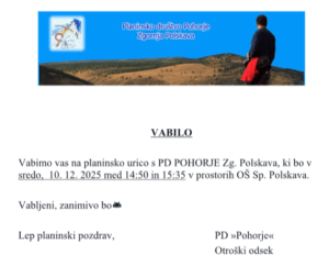 Vabimo vas na planinske urice s PD Pohorje Zgornja Polskava, ki bodo potekale v naslednjih terminih: